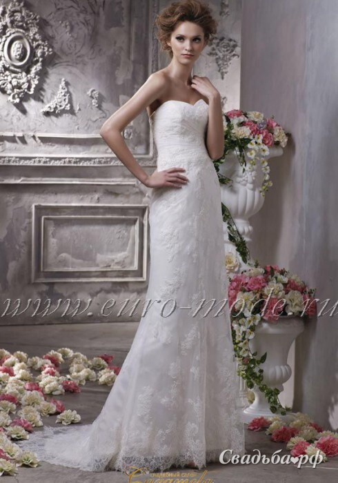 Утонченная кружевная модель с прямой юбкой зрительно вытягивает силуэт и подчёркивает достоинства фигуры. Свадебное платье просто создано для невест, ценящих дорогую простоту и изысканность. Корсет с открытой зоной декольте привлекает внимание к бюсту. В таком наряде от именитого бренда Benjamin Roberts Вы будете неотразимы!