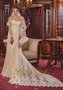 Облегающее свадебное платье с открытыми плечами, но с длинными кружевными рукавами подчеркнет Вашу хрупкость и индивидуальность. Этот оригинальный наряд подчёркивает все достоинства фигуры и зрительно вытягивает силуэт. Возможные цвета: капучино, кремовый, белый.