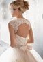 Для создания незабываемого образа современной невесты именитый бренд Mori Lee рекомендует это свадебное платье со съёмной кружевной вставкой. Миниатюрный корсет с открытой зоной декольте и тончайшей драпировкой выгодно подчёркивает достоинства фигуры. Талия украшена широким поясом со сверкающей вышивкой. Пышная юбка напоминает невесомое облако.
