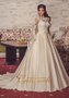 Элегантное свадебное платье в А-силуэте с атласной юбкой и кружевным верхом.