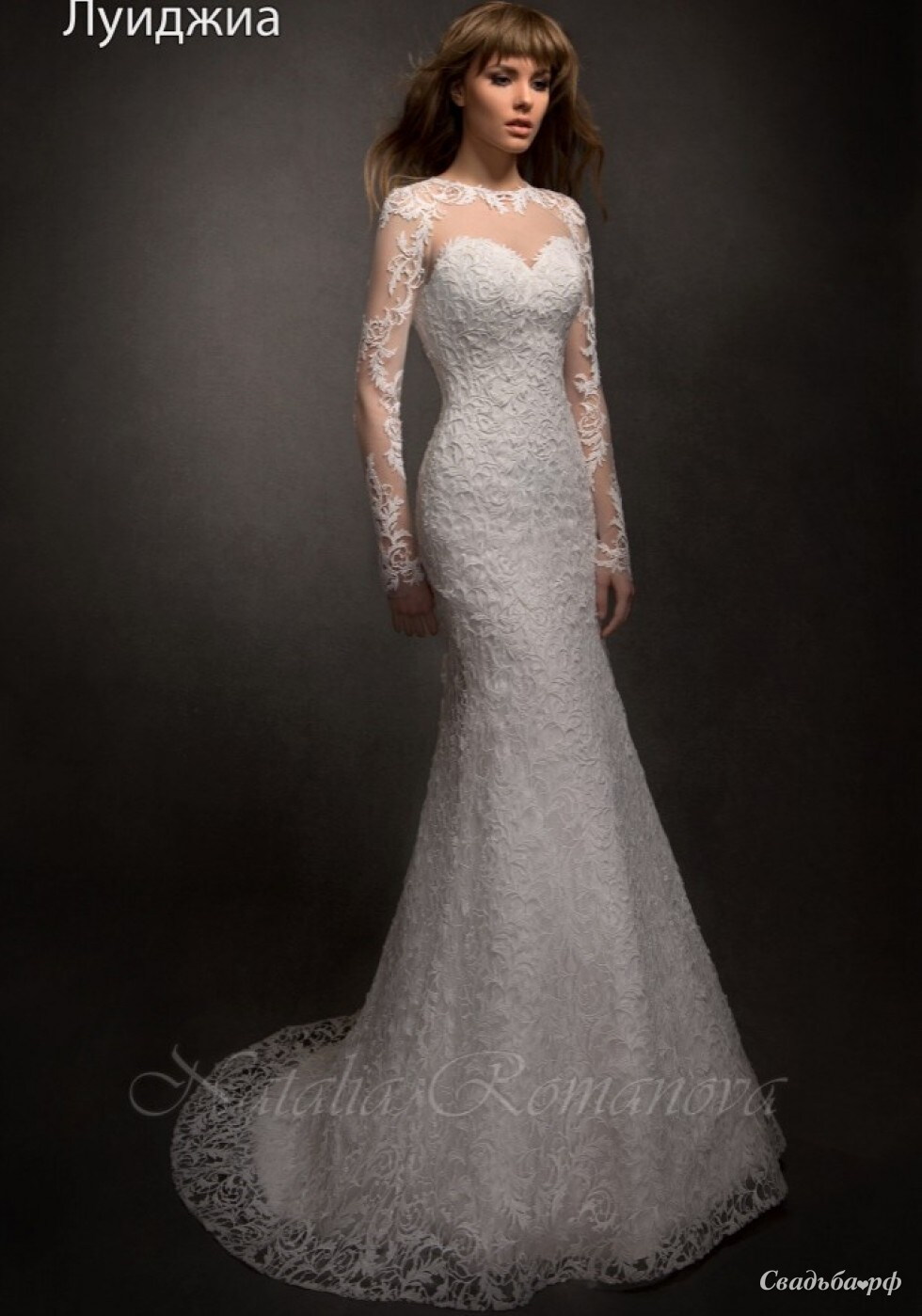 Оригинальное свадебное платье А-силуэта привлекает и запоминается своим необычным решением кружева.