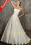Распродажа. Остатки коллекции. Платье А-силуэта с гофрированной юбкой, корсет интересно украшен вертикалями рельефных полос, расшитые бисером и кристаллами, декорируют удлинённый лиф со сглаженной линией декольте в форме «сердечка» и плавно переходят в верхний слой эффектной юбки из разнофактурных полос атласа и органзы, постепенно расширяющихся к подолу и визуально вытягивающих фигуру. Узкие шнурочки, крест-накрест обвивающие область под бюстом, усиливают приталенный эффект. Сзади – застёжка «молния», закрытая пуговицами.