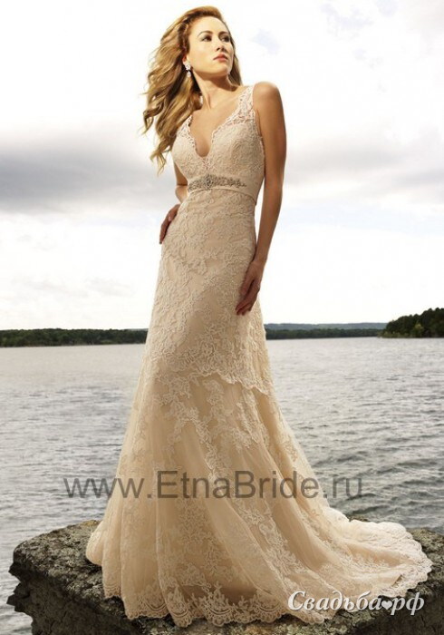 Эффектное свадебное платье Андреа с роскошным шлейфом выполнено из тончайшего кружева, такого нежного и лёгкого. V-образный вырез на груди и пикантно оголённая спинка придают наряду особый шик. Завышенная талия подчёркнута пояском с вышивкой. Струящаяся юбка расширяется к полу. Ещё больше моделей на нашем сайте www.EtnaBride.ru.