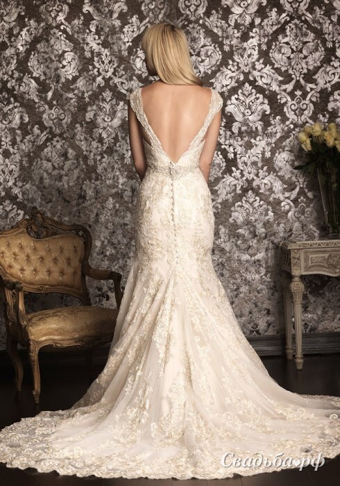 Очаровательная модель с оголённой спинкой и изящными бретелями садится по фигурке как влитое. От середины бедра юбочка слегка расширяется и переходит в роскошный шлейф с ажурной окантовкой. Представленное свадебное платье осталось в единственном экземпляре! Размер 44-46. Ещё больше моделей на нашем сайте www.EtnaBride.ru.