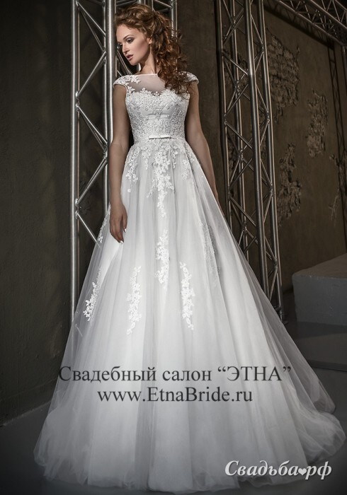 Кружевное свадебное платье с очень красивой закрытой спинкой и полупрозрачной вставкой на груди просто незаменимо для создания скромного образа невесты. Талия подчёркнута тончайшим пояском. Длинная юбка расширяется к полу и придаёт наряду воздушность. Подол декорирован кружевными вставками. Ещё больше моделей на нашем сайте www.EtnaBride.ru.