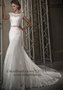 Оригинальная модель выполнена из тончайшего кружева. Ажурная вставка на груди и такие же рукавчики-плечики гармонично сочетаются с пикантно оголённой спиной. Контрастный пояс со сверкающей вышивкой украшает осиную талию невесты. Юбка постепенно расширяется и перетекает в роскошный шлейф. Ещё больше моделей на нашем сайте www.EtnaBride.ru.