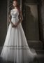Нежное свадебное платье DECA. Тончайшее кружево покрывает корсет модели и, плавно переходя на зону декольте, формирует округлый вырез. Линия талии выделена широким атласным поясом с изысканной композицией из стразов. Вдоль спинки – элегантный ряд пуговиц. Наличие нужного размера уточняйте по телефонам салона ЭТНА. Наш сайт www.EtnaBride.ru