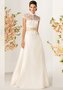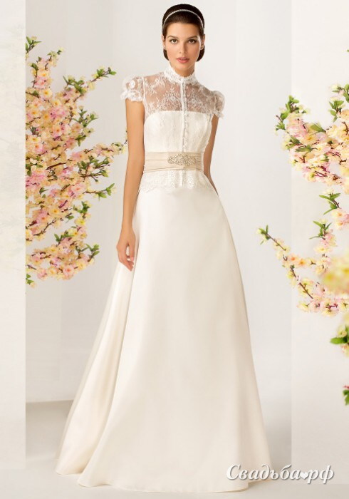 Милое и нежное свадебное платье. Основу модели составляет платье А-силуэта с прямым открытым лифом. Верхняя часть выполнена в виде кружевной блузочки с воротником-стоечкой, рукавчиками-фонариками и рядом пуговичек. Линия талии выделена широким поясом. Наличие нужного размера уточняйте по телефонам салона ЭТНА. Наш сайт www.EtnaBride.ru
