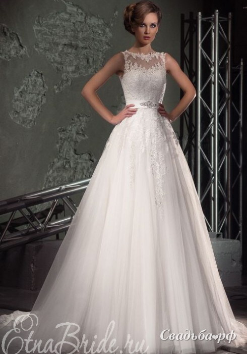 Милое и утончённое платье. Кружевные узоры особенно эффектно смотрятся на фоне нежной кожи зоны декольте и спины. Они также полностью покрывают корсет и спускаются на пышную юбку. Широкий пояс с композицией из стразов эффектно выделяет линию талии. Наличие нужного размера уточняйте по телефонам салона ЭТНА. Наш сайт www.EtnaBride.ru