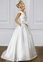 Элегантное свадебное платье с глубоким V-образным вырезом в форме отложного воротника. Линия талии выделена широким поясом с кокетливым объёмным бантом сбоку. Роскошная юбка мягкими фалдами ниспадает на пол и делает наряд по-королевски изысканным. Наличие нужного размера уточняйте по телефонам салона ЭТНА. Наш сайт www.EtnaBride.ru