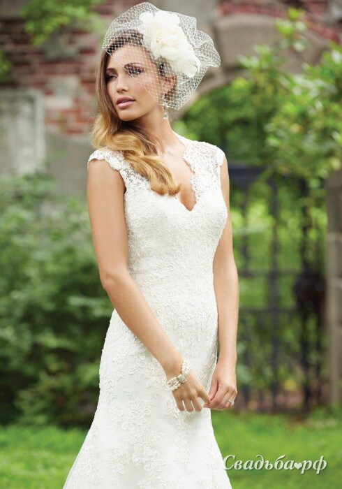 Романтичное кружевное свадебное платье с фигурным вырезом. Прилегающий силуэт эффектно подчёркивает изгибы фигуры. Спинка модели украшена элегантным рядом крохотных жемчужных пуговичек. Эта оригинальная деталь делает образ ещё более изысканным и утончённым. Наш сайт www.EtnaBride.ru. При покупке в день первой примерки - скидка 10%
