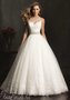Великолепное свадебное платье с расшитым кристаллами Swarovski корсетом. Зона декольте и спина кокетливо прикрыты полупрозрачной тканью. Вдоль спины проходит элегантный ряд крохотных пуговичек. Линия талии выделена декоративным поясом из стразов. Пышная юбка украшена кружевным орнаментом. Еще больше платьев на нашем сайте www.EtnaBride.ru