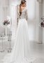 Оригинальное прямое свадебное платье с полупрозрачным корсетом и легкой юбкой. Лиф платья имеет глубокий V–образный вырез, открывающий зону декольте и плечи. Корсет дополнен длинными рукавами и расшит французским кружевом. Шифоновая юбка переходит в шлейф. Такой наряд подчеркнет экстравагантность невесты.