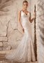 Элегантное и неповторимое свадебное платье из нежнейшего кружева на тонких бретелях. Эта модель с открытой спинкой и вырезом на груди идеально подчеркивает силуэт и не оставит невесту незамеченной. Длинная юбка облегает бёдра и постепенно расширяется к полу, переходя в изящный шлейф. Модель идеально садится по фигуре.