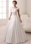 Классическое закрытое свадебное платье А-силуэта с кружевным верхом и атласной юбкой. Корсет с сердцевидным лифом обтянут изысканным кружевом с красивыми ажурными узорами и дополнен небольшими рукавами-крылышками. Благодаря удобной шнуровке на корсете, модель великолепно подчеркивает фигуру. Юбка из атласа завершает образ.