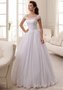 Воздушное свадебное платье c нежным кружевным верхом для настоящей принцессы! Корсет дополнен небольшими рукавами из мягкого кружева с необычным узором. Талия украшена тонким поясом с бантиком. Легкая юбка из шифона струится до пола.