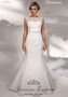 Кружевное платье силуэта рыбка с закрытым верхом и с короткими рукавами. Вырез в зоне декольте в форме сердечка. На спине V-образный вырез и маленькие милые пуговички. На талии атласный пояс с двойным бантиком.