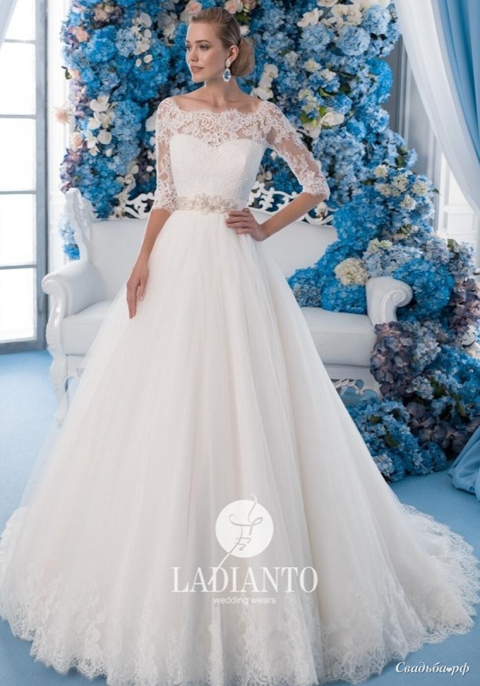 Роскошное свадебное платье с пышной юбкой. Корсет из кордового кружева, низ юбки отделан кружевом шантильи. Изящная спинка на европейской пуговичной застежке.