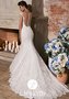 Невероятное свадебное платье силуэта «рыбка». Верх модели дополнен маленькими плечиками. Корсет с невероятно красивой спинкой выполнен из телесной сетки, создающей эффект обнаженного тела, и декорирован маленькими пуговками. Пышная юбка из нескольких слоев фатина от бедра переходит в роскошный шлейф, украшенный королевским кружевным кантом.