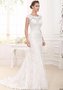 Роскошное свадебное платье в стиле рыбка из нежного кружева. Модель подчеркивает женственные изгибы фигуры. Корсет дополнен закрытой зоной декольте и закрытой спинкой, декорированной элегантными пуговками. Небольшой шлейф завершает образ.