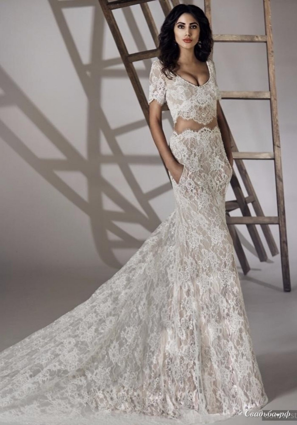 Необычайно роскошное кружевное свадебное платье с оригинальным фасоном из коллекции 2017 года от бренда Ida Torez!
