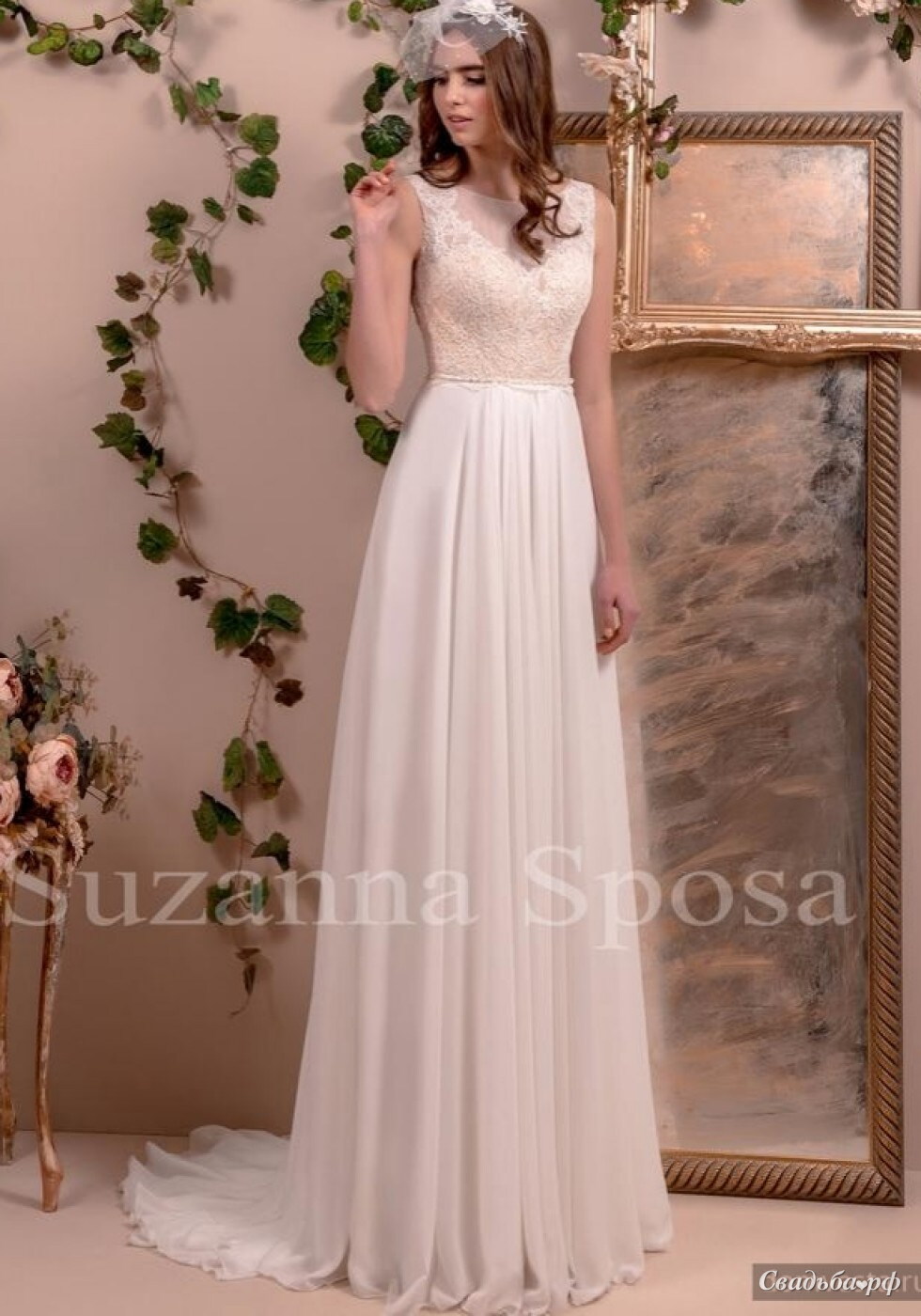 Восхитительно нежное и воздушное свадебное платье прямого силуэта из коллекции 2016 года.