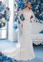 Модель силуэта русалка. Юбка креп-атлас. Спина, рукава и корсет из эксклюзивного испанского кружева. На европейской пуговичной застежке.