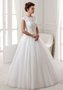 Шикарное свадебное платье с пышной юбкой. Строгий корсет с фигурным лифом обтянут цветочным кружевом с изумительной нежной сверкающей вышивкой, закрывающим зону декольте. На спинке округлый вырез, подчеркивающий изящные линии фигуры. Роскошная юбка из фатина завершает образ.