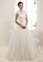 Изысканное и недорогое свадебное платье А-силуэта с закрытым кружевным верхом. Корсет модели, зона декольте и спинка украшены нежным кружевом. Линия талии занижена и акцентирована широким атласным поясом. Легкая юбка со складками из легкого шифона с воланами на подоле завершает образ.
