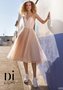 Платье длины миди А-образного силуэта. Модель отрезная по талии. Вырез лифа в форме сердца, спинка закрытая, на молнии. Корсет фигурно выложен атласными лентами. Платье декорировано жемчужинами.