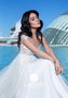 Свадебное платье в греческом стиле с завышенной линией талии. В зоне лифа V-образный вырез, верх из тонкого кружева и дополнен небольшими плечиками. Спинка открытая, на шнуровке. Длинная юбка с разрезом впереди выполнена из искрящегося фатина.