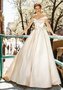 Пышное платье коллекции SUNRISE из жаккардовой ткани с открытыми плечами и эффектным вырезом, верх полностью расшит бисером
