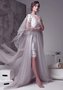 Свадебное платье-трансформер, состоящее из кружевного платья силуэта футляр и фатиновой накидки. Платье с мягким лифом и открытой спинкой.