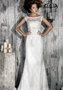 Кружевное закрытое свадебное платье с вырезом лодочка изящно подчеркнет тонкую шею. Грудь подчеркивает оригинальный расшитый поясок. Утонченный, нежный образ наряда никого не оставит равнодушным. Отлично выглядит на молодой невесте среднего или высокого роста, хрупкого телосложения. Добавьте к наряду диадему.