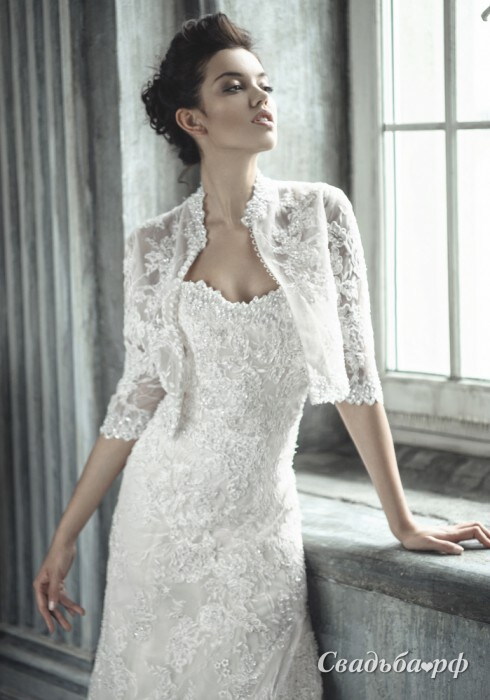 Итальянское свадебное платье выполнено из кружева. Этот наряд А-образного силуэта дополнен изящным болеро. Миниатюрный корсет с открытой зоной декольте вручную расшит бисером. Длинная юбка постепенно расширяется к полу и зрительно вытягивает фигуру. Роскошный шлейф придаёт образу королевский шик. От Вас невозможно будет оторвать взгляд!