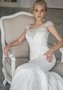 Итальянский наряд из новой коллекции 2015 года создан специально для Вас! Роскошное кружевное свадебное платье силуэта русалка эффектно подчеркнёт все достоинства Вашей фигуры. Скромный вырез - лодочка по краю вручную расшит россыпью страз и бисера. От середины бедра облегающая юбка расширяется и постепенно переходит в шлейф.