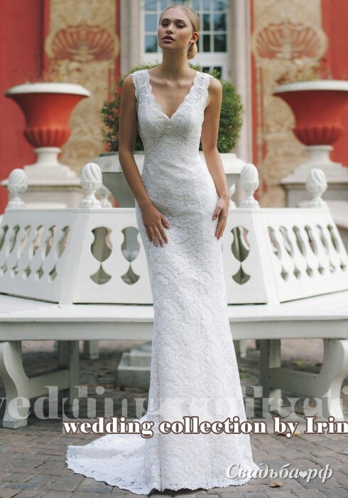 Простота кроя и невероятное кружево - неизменная классика и стиль! Глубокий V-образный вырез на груди и приталенный силуэт выгодно подчеркивают достоинства фигуры. Широкие бретели придают образу изысканность. Длинная юбка зрительно прибавляет рост. Это платье от именитого дизайнера Ирины Люкс дополнено роскошным шлейфом.
