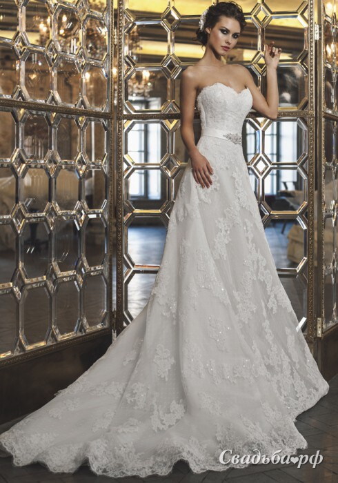 Самая популярная модель классического свадебного платья А-силуэта от всемирно известного бренда BeLoved придётся по душе самым притязательным невестам. Роскошное кружево, открытый верх, вырез сердечком, на талии изящный поясок – вот она, классика вне времени! Длинная юбка со сверкающими вставками расширяется к полу и переходит в шлейф.