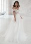 Свадебное платье А-силуэта с вырезом сердечком и широкими спущенными бретелями. Корсет расшит кружевом, спинка на внутреннем корсете со шнуровкой и пуговичками.