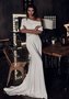 Свадебное платье прямого силуэта с рукавами 3/4 и поясом на талии.
