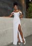 Свадебное платье облегающего силуэта со спущенными бретелями и высоким разрезом вдоль ноги. Дополнительная юбка, придающая платью А-силуэт, продается отдельно. Основной материал платья - атлас