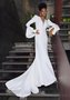 Свадебное платье облегающего силуэта с длинными рукавами с пышными манжетами и спинкой на молнии. Основной материал: атлас