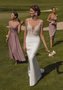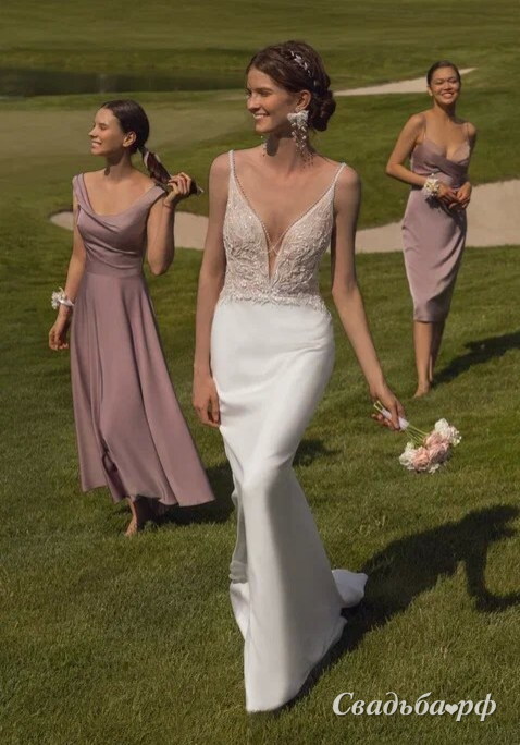 Свадебное платье облегающего силуэта "Русалка" на тонких бретелях и с открытой спиной на молнии. Основной материал: тонкий атлас, кружево