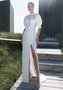 Свадебное платье облегающего силуэта с небольшими объемными рукавами до локтя и разрезом. Спинка на молнии. Основной материал: атлас