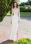 Свадебное платье облегающего силуэта с прозрачными длинными рукавами и высоким боковым разрезом. Спинка на пуговичках и молнии. Основной материал: глиттер