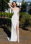 Свадебное платье облегающего силуэта с разрезом и спинкой на корсете со шнуровкой. Основной материал: глиттер