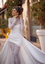 Свадебное платье-трансформер, состоящее из длинного кружевного платья, мини-платья и съемной юбки-шлейфа. Стоимость указана за комплект, отдельно атласное платье со шлейфом 80200 рублей, кружевное платье по стоимости 38700 рублей. Материал: кружево, микадо