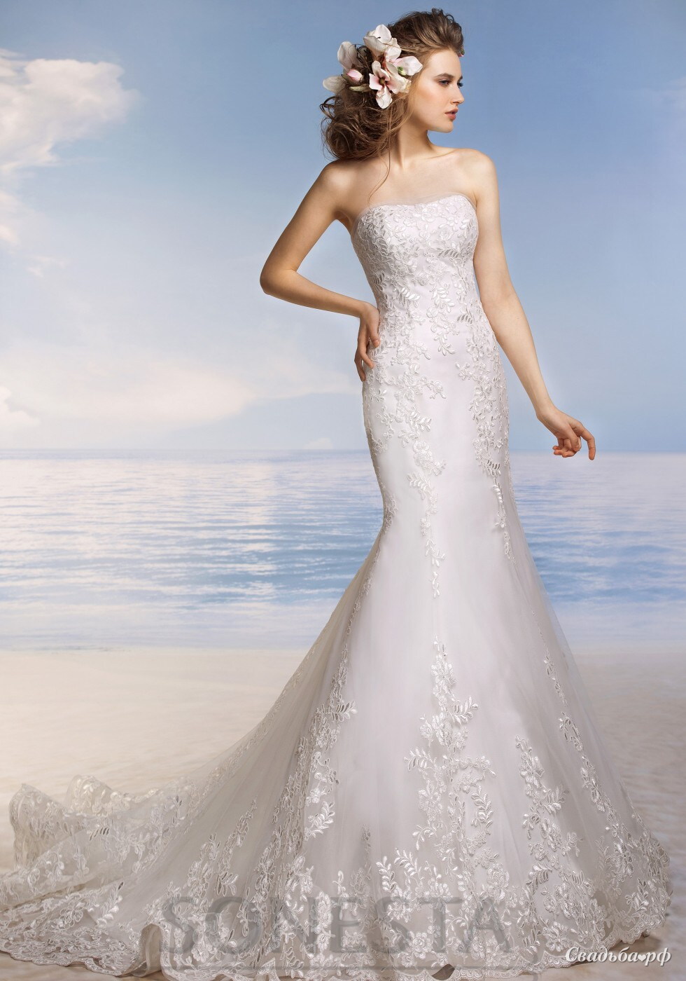 Это платье Вы можете приобрести в салоне Ливадия (1 этаж, павильон И-9). www.dressforyou.ru - Рыбка со шлейфом, кружево, цвет молоко.