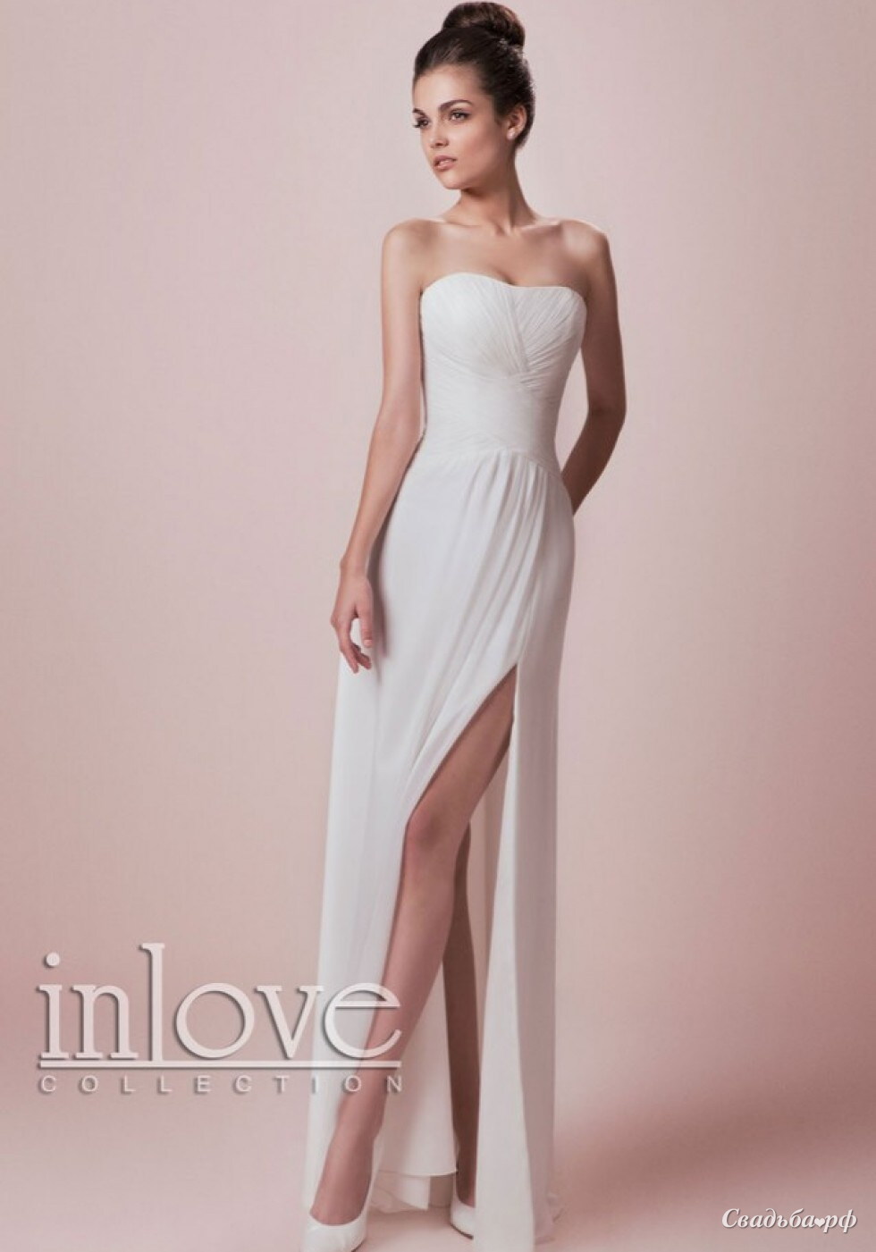 Прямое шифоновое платье с разрезом. Цвет молочный. Это платье Вы можете приобрести в салоне Ливадия (1 этаж, павильон И-9). www.dressforyou.ru