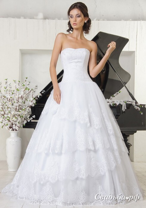 Свадебное платье Кимберли из новой коллекции 2014 года, изысканное и роскошное, представлено в свадебном салоне Noelle. Классический наряд А-силуэта – это стиль, проверенный веками. Изящный корсет украшен вышивкой ручной работы. Пышная юбка со скошенными ярусами из кружева смотрится оригинально. В этом платье Вы будете в центре внимания.